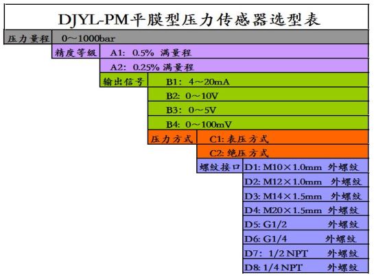 产品名称: 平膜压力传感器/变送器 DJYL-PM