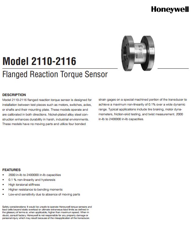 美国Honeywell力传感器2110