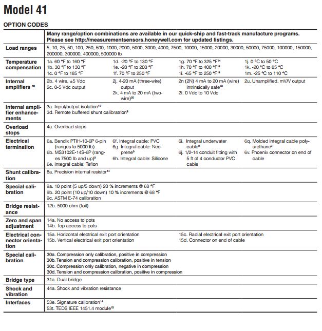 美国Honeywell力传感器41