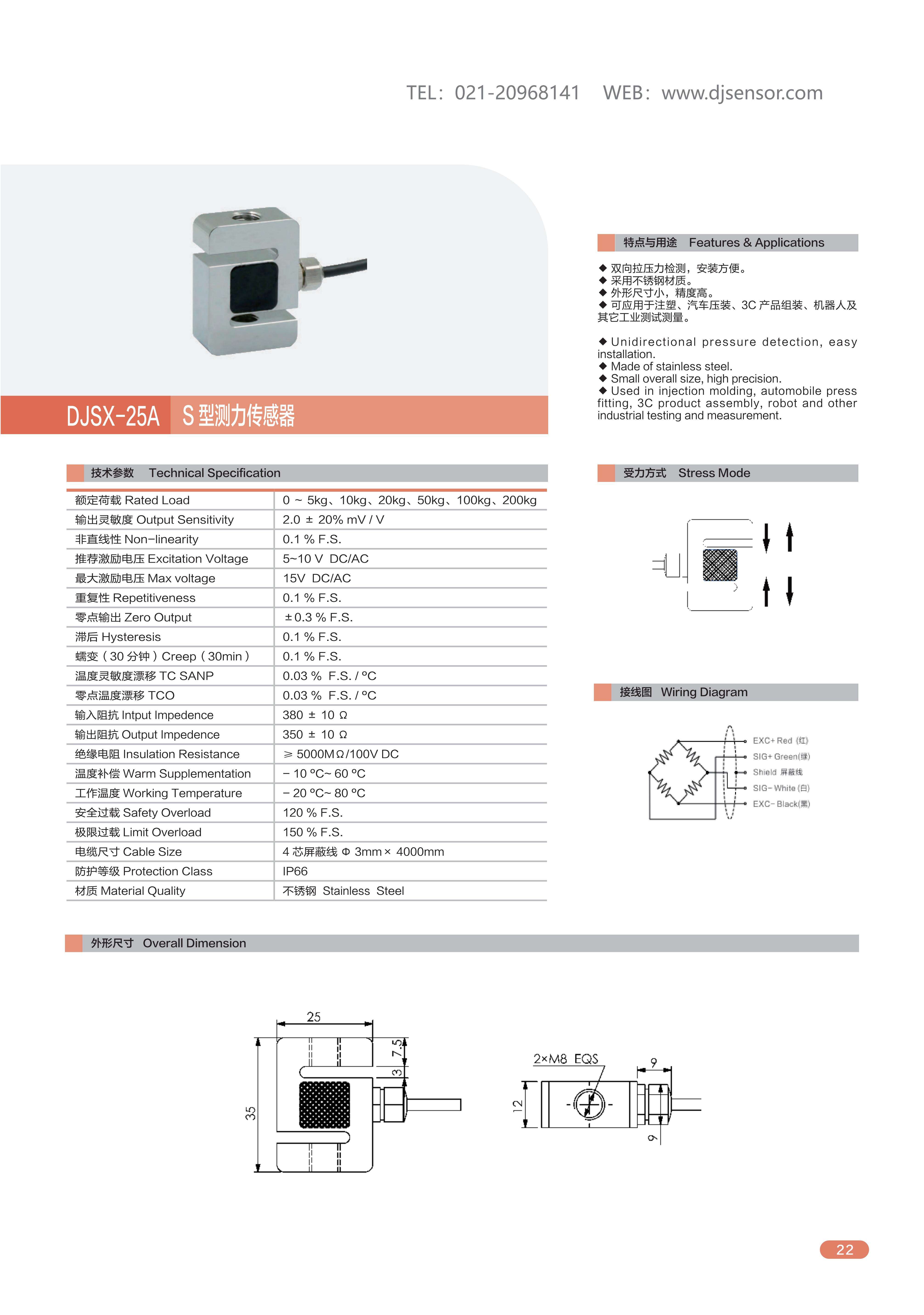 DJSX-25A S型拉压力传感器