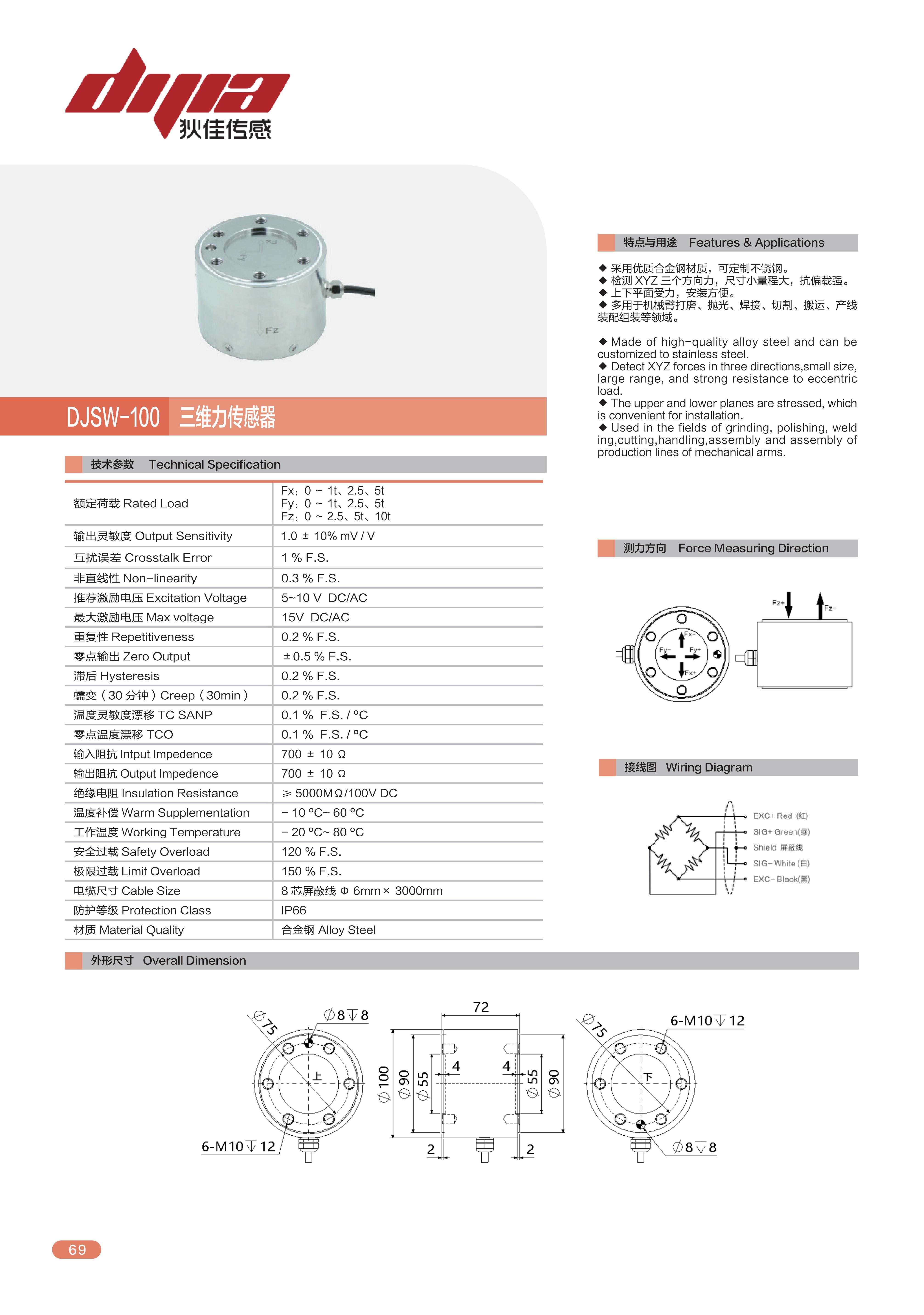 ◆检测XYZ三个方向力,尺寸小量程大,抗偏载强