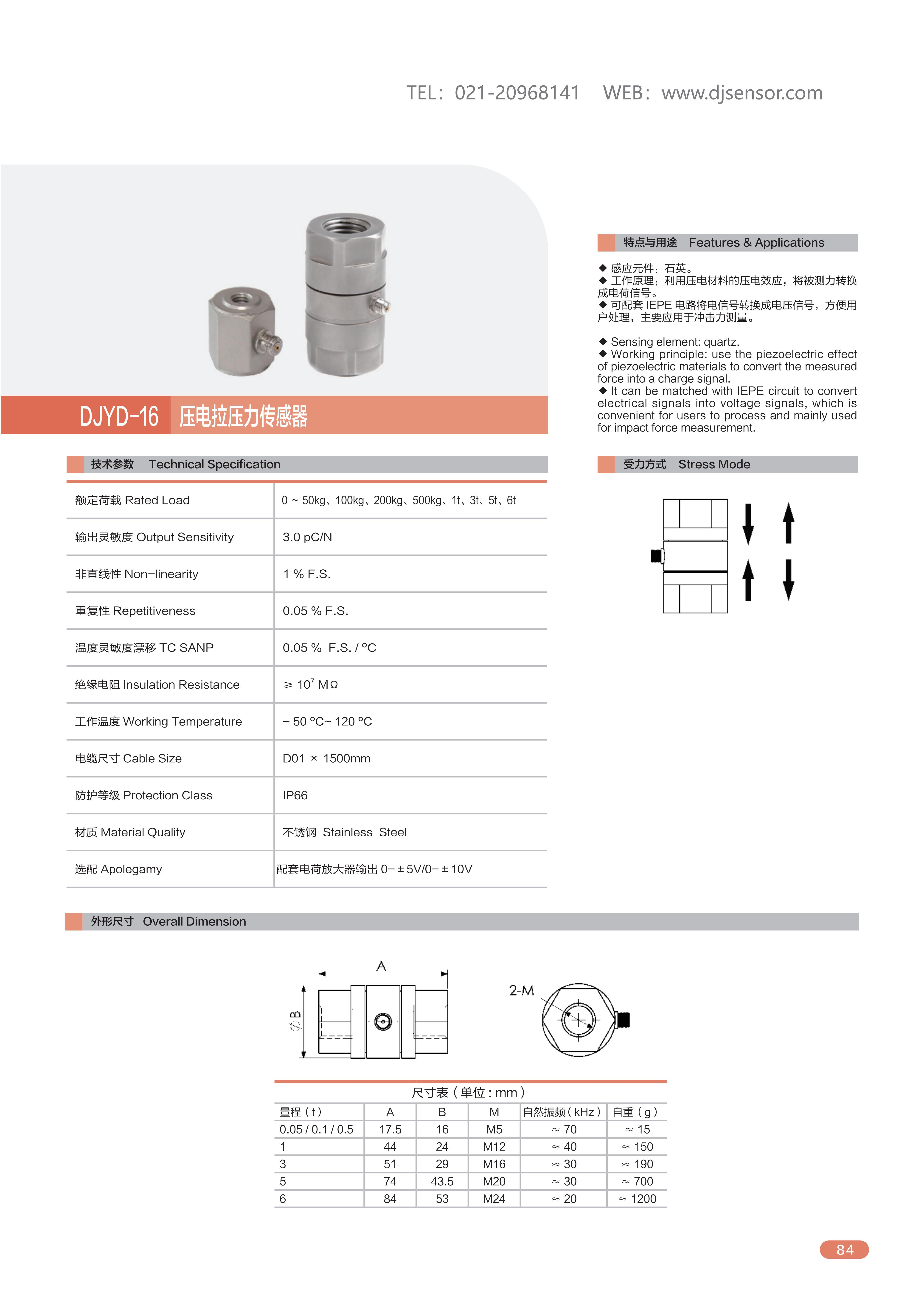 ◆可配套IEPE电路将电信号转换成电压信号,方便用户处理,主要应用于冲击力测量