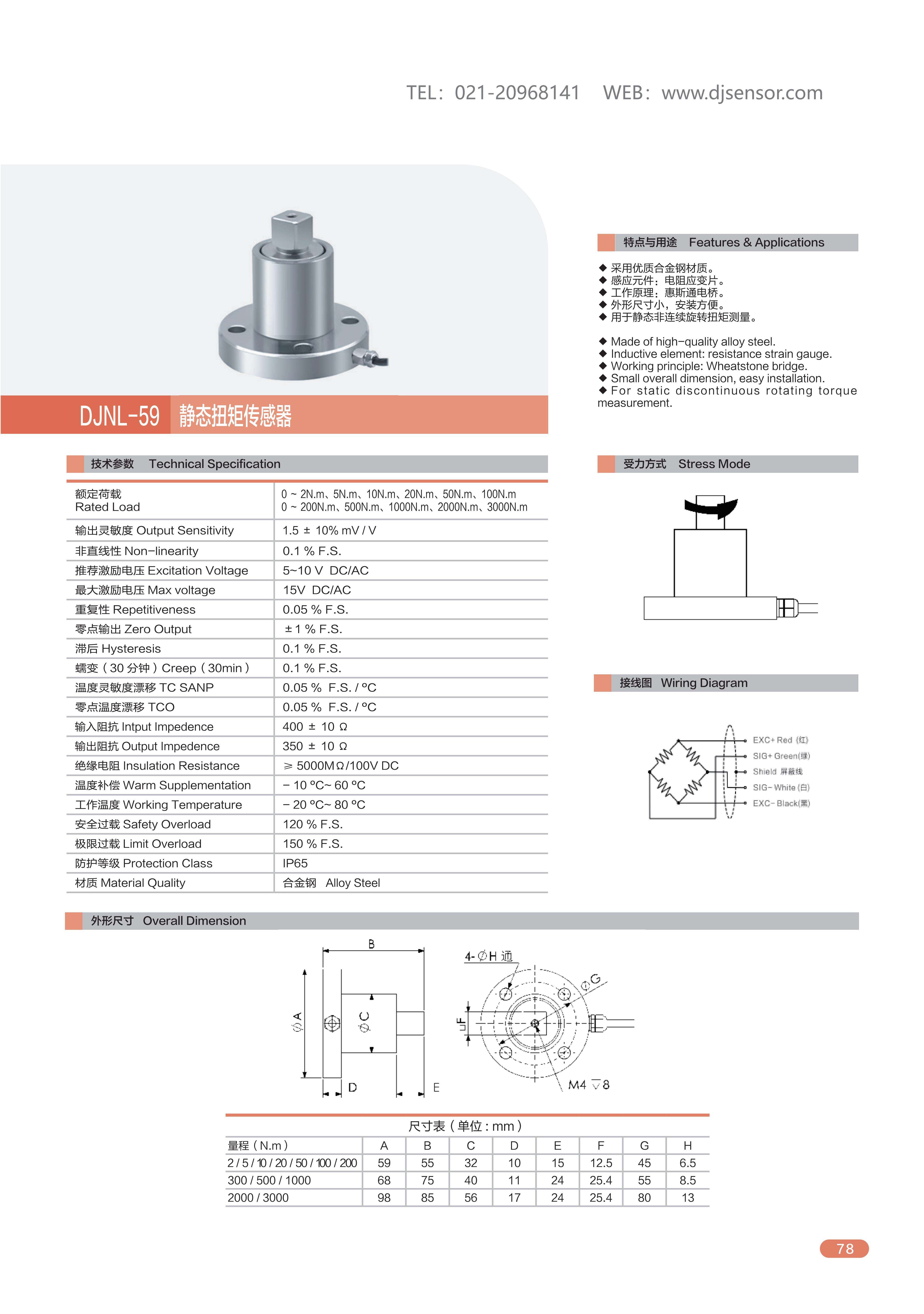 DJNL-59静态扭矩传感器