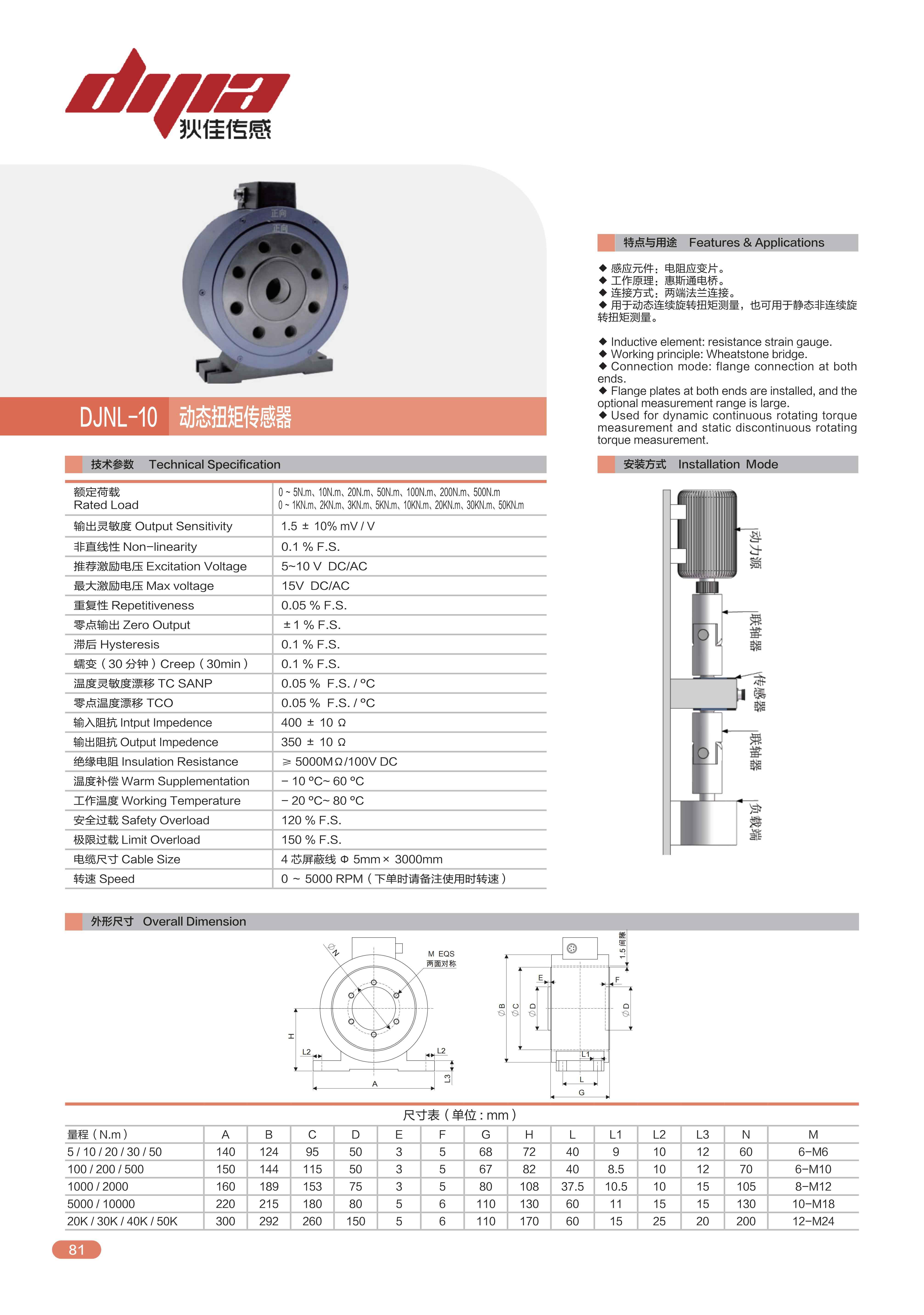 DJNL-10动态扭矩传感器