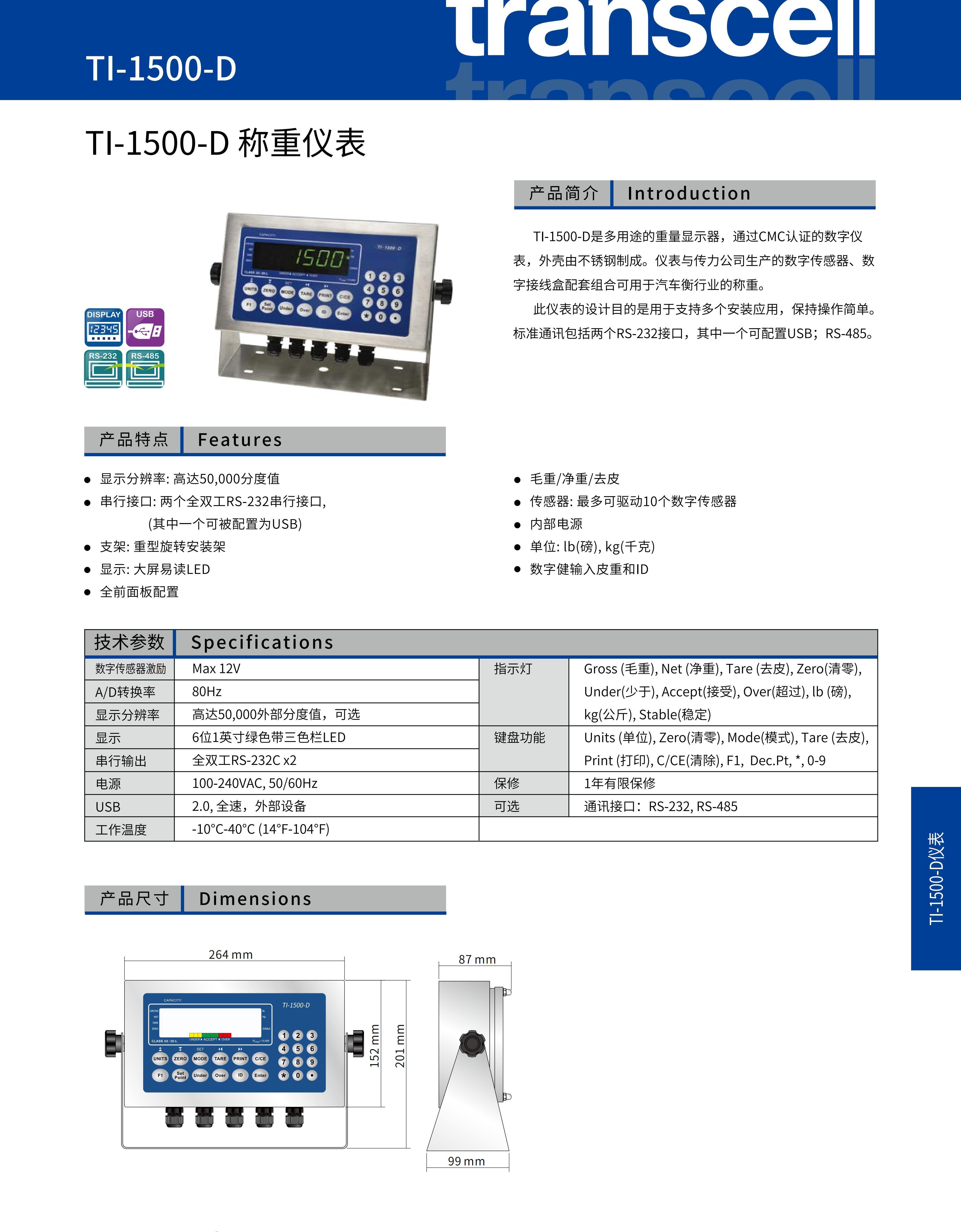 美国transcell称重仪表TI-1500-D
