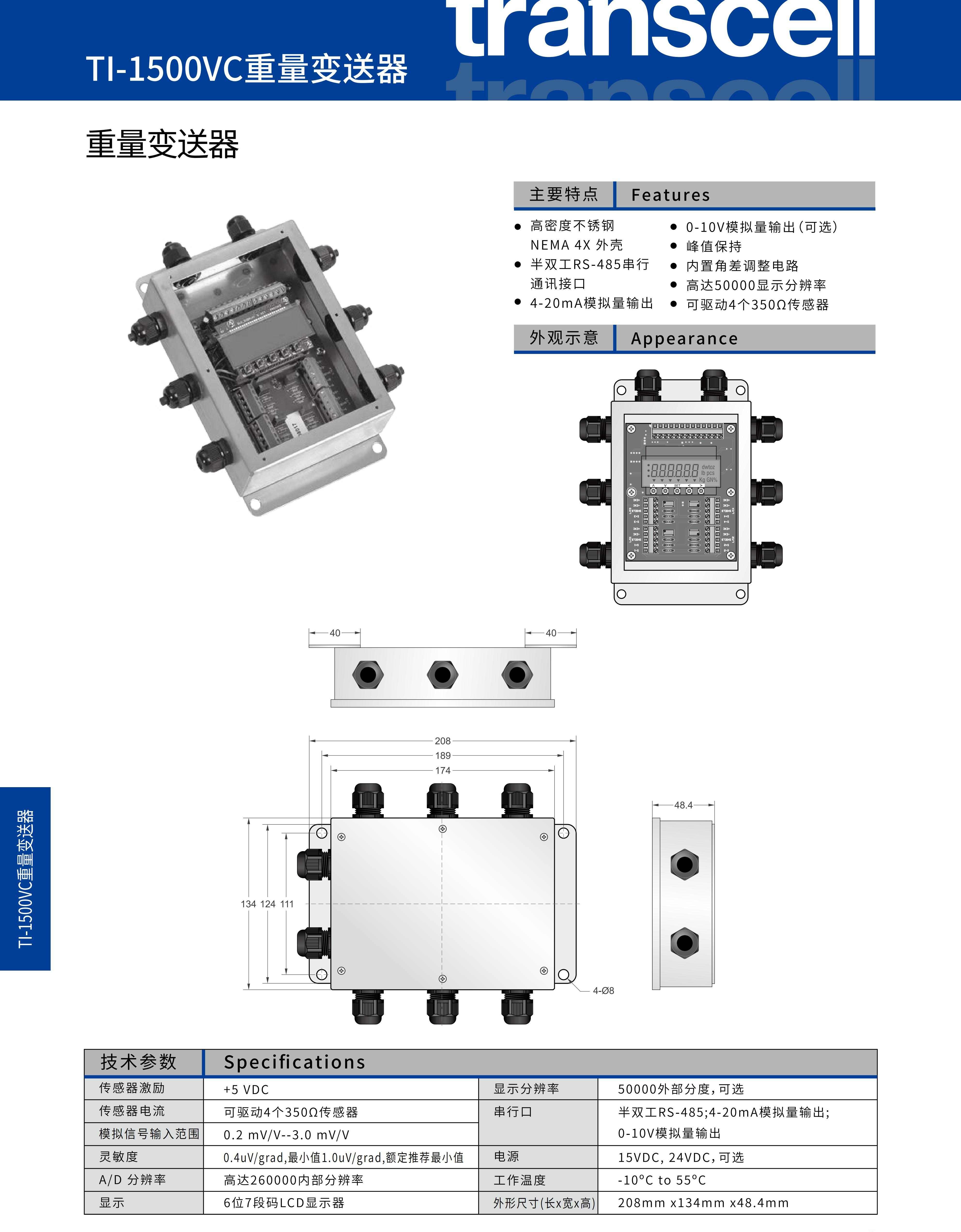 美国transcell重量变送器TI-1500VC