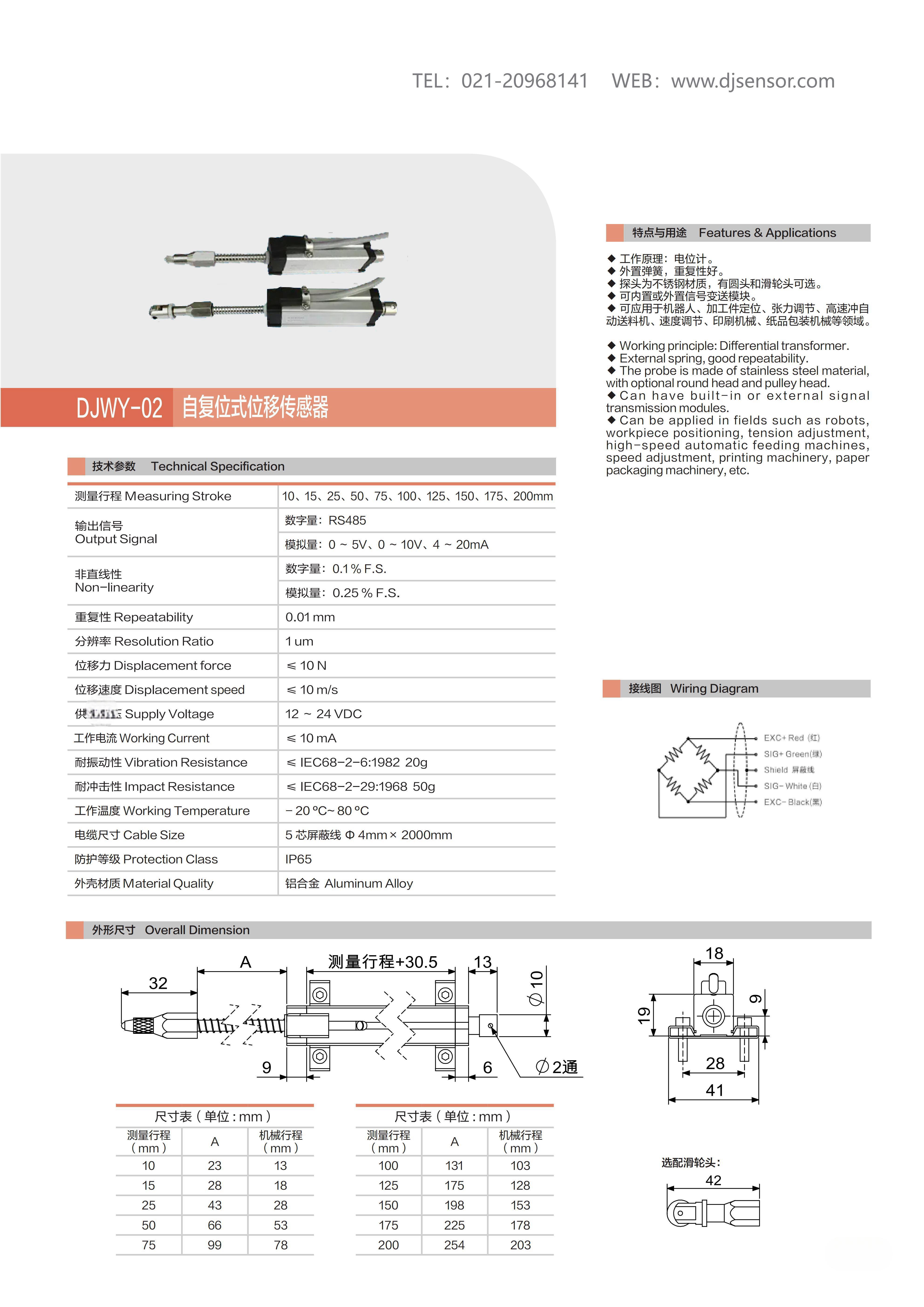 直线位移传感器-自复位式位移传感器DJWY-02