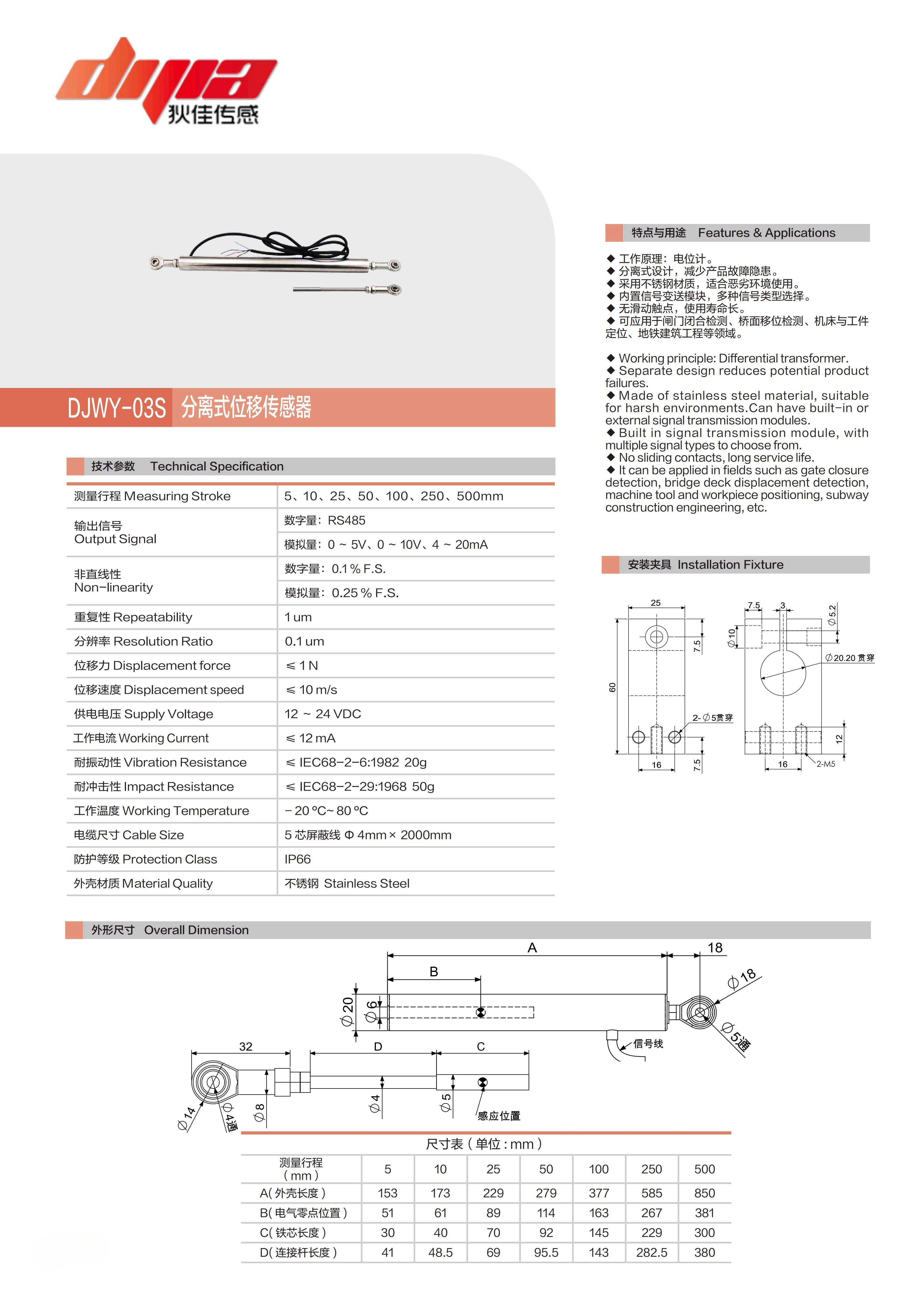 差动变压位移传感器-分离式位移传感器DJWY-03S
