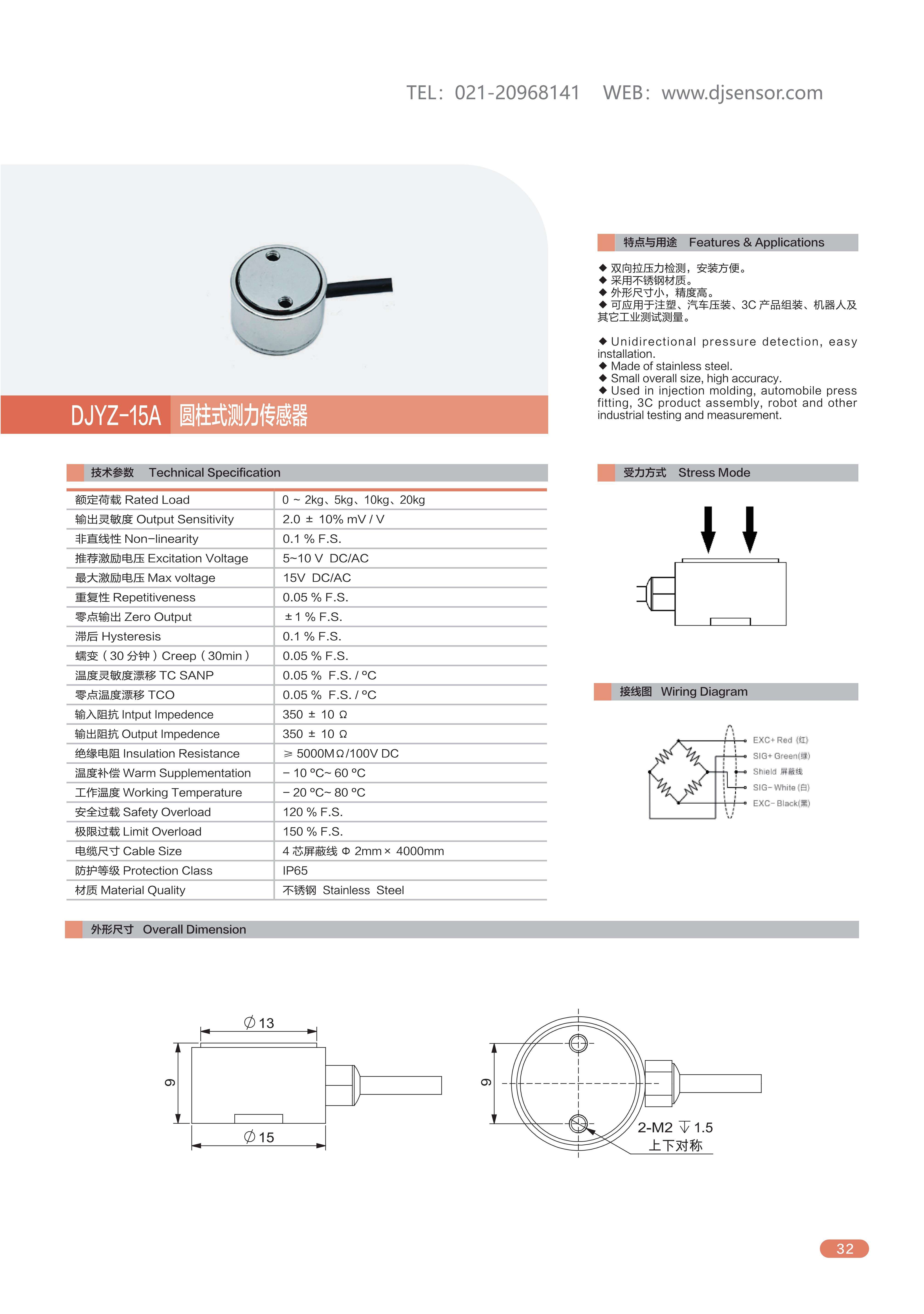 DJYZ-15A微型圆柱式测力传感器