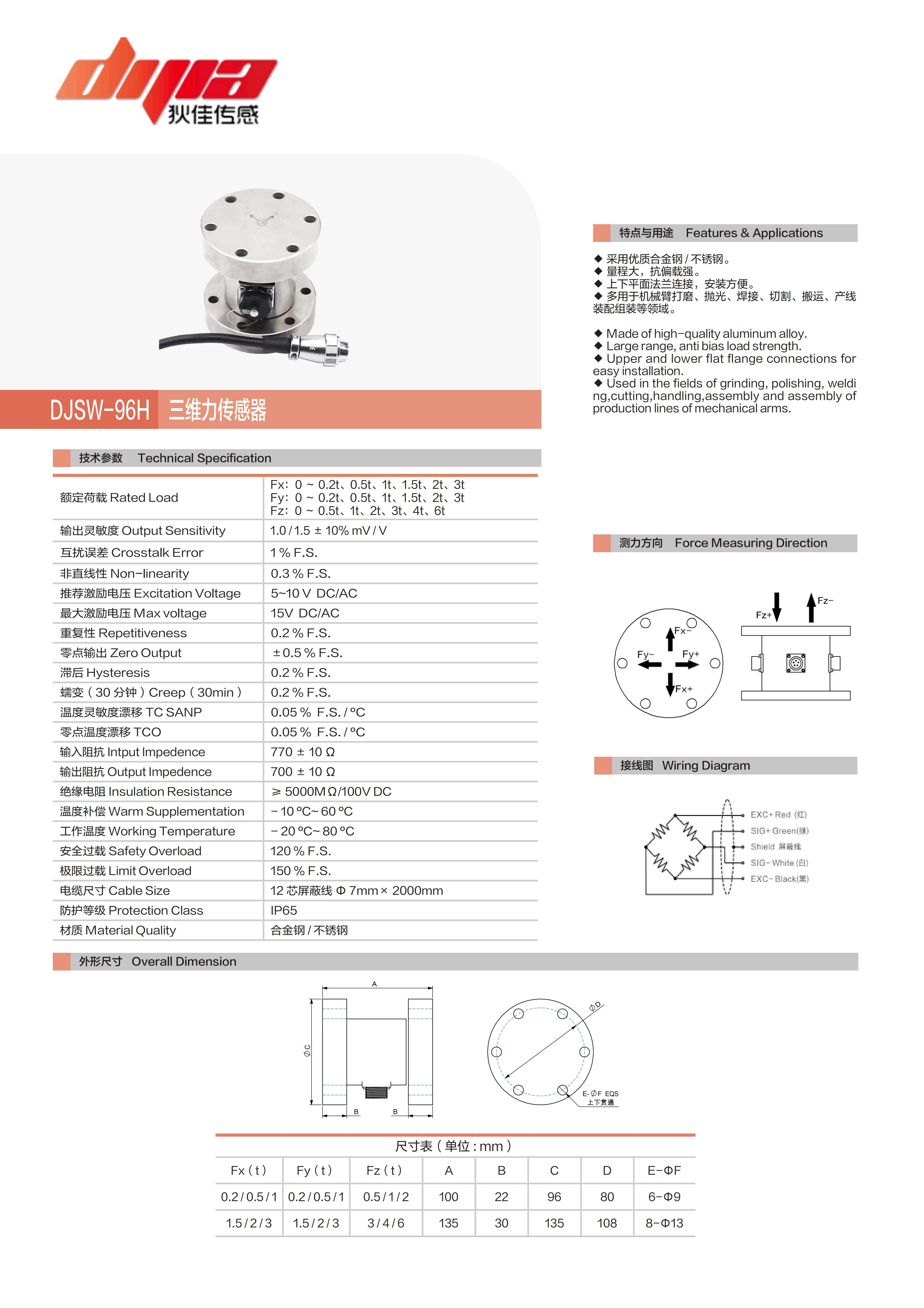 DJSW-96H三维力传感器