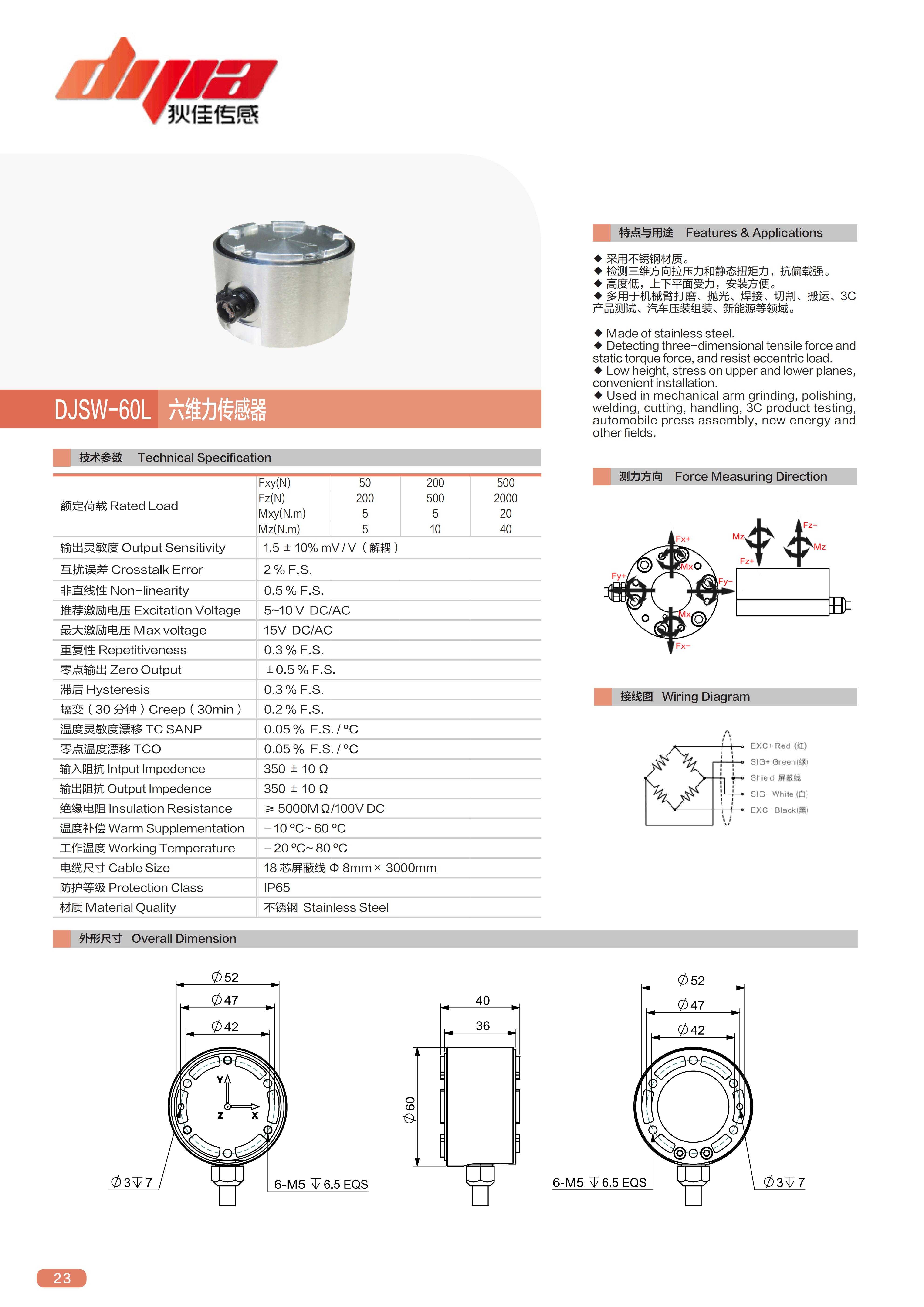 ◆检测三维方向拉压力和静态扭矩力,抗偏载强。
