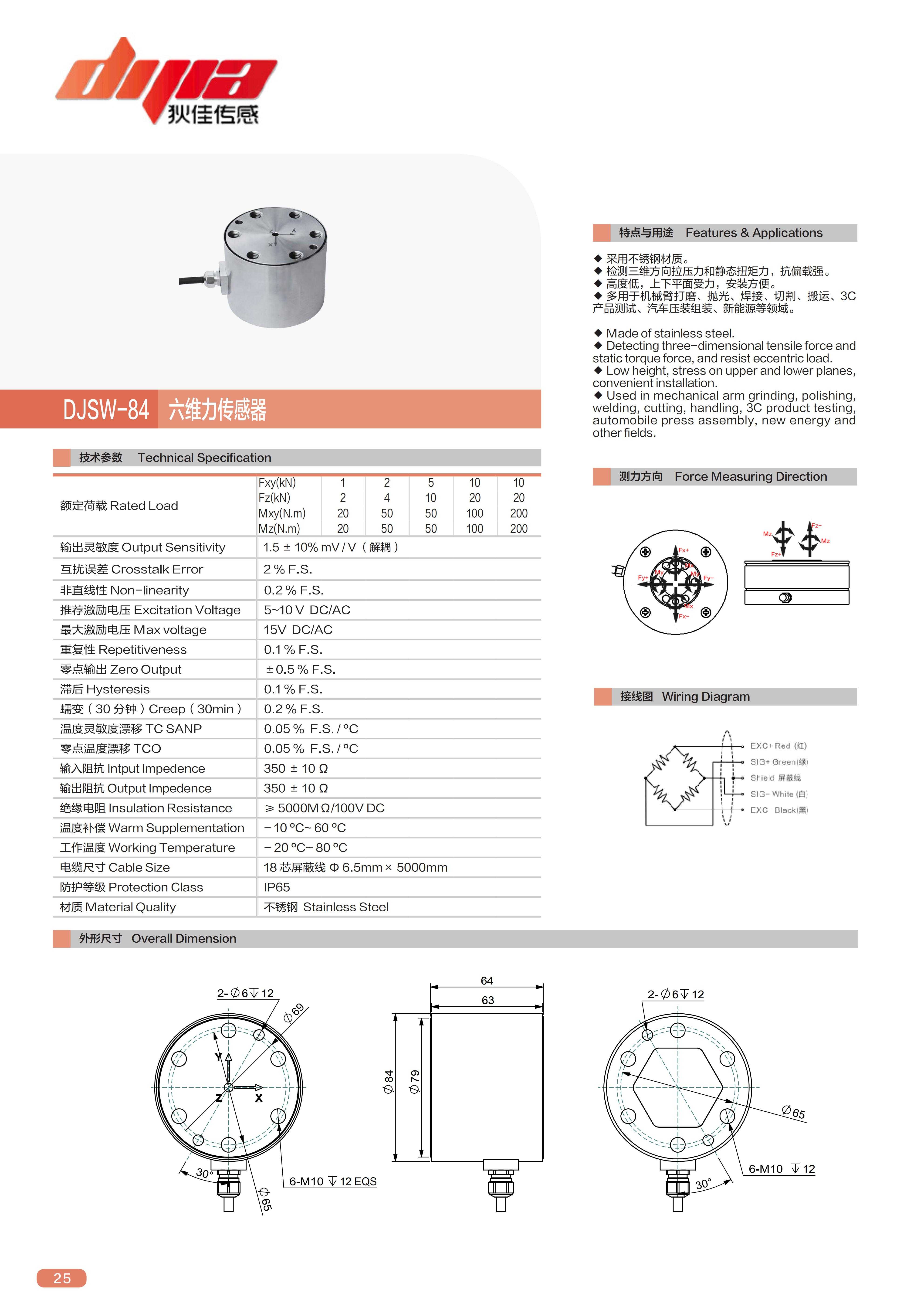 DJSW-84六维力传感器