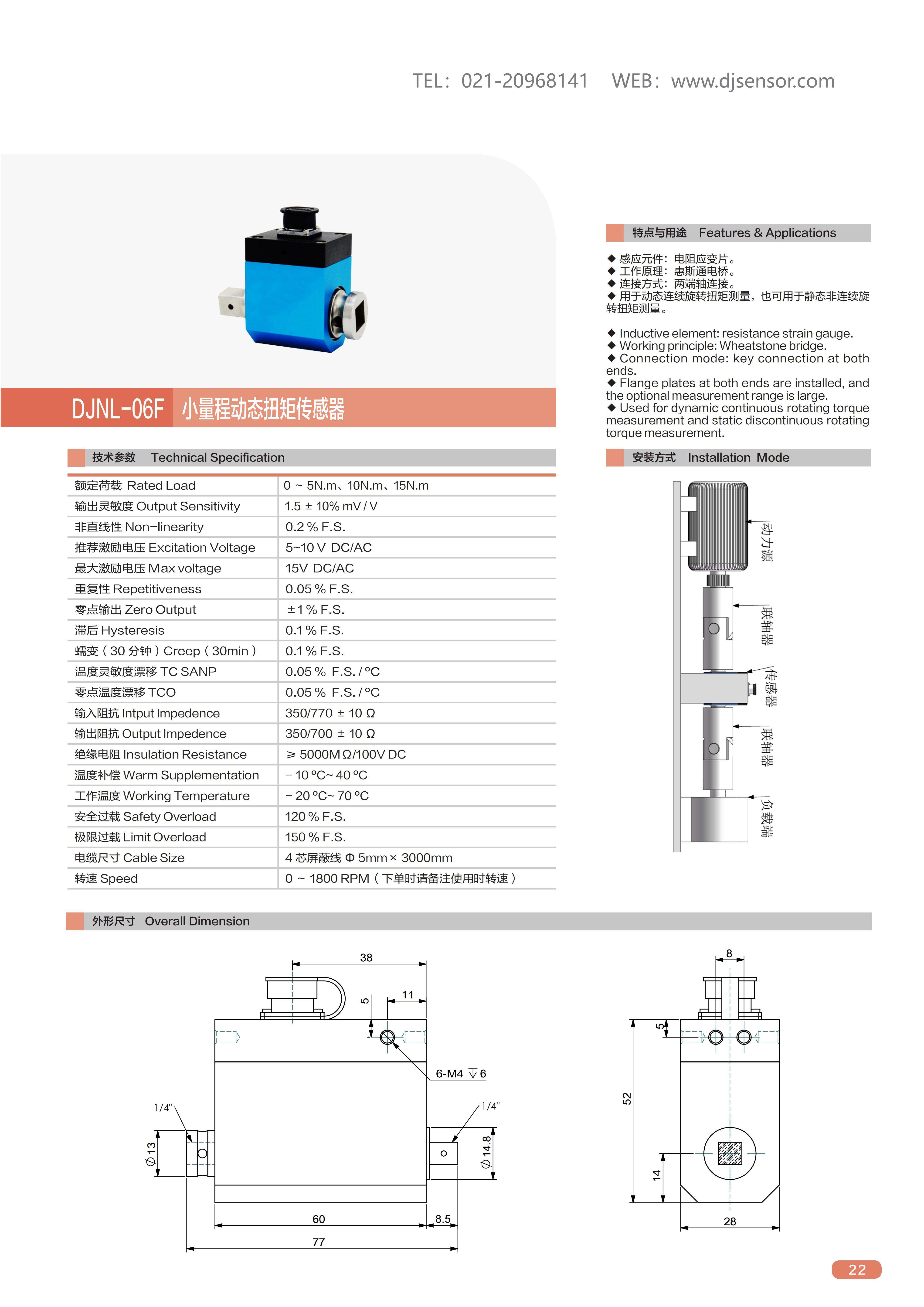 ◆用于动态连续旋转扭矩测量,也可用于静态非连续旋转扭矩测量