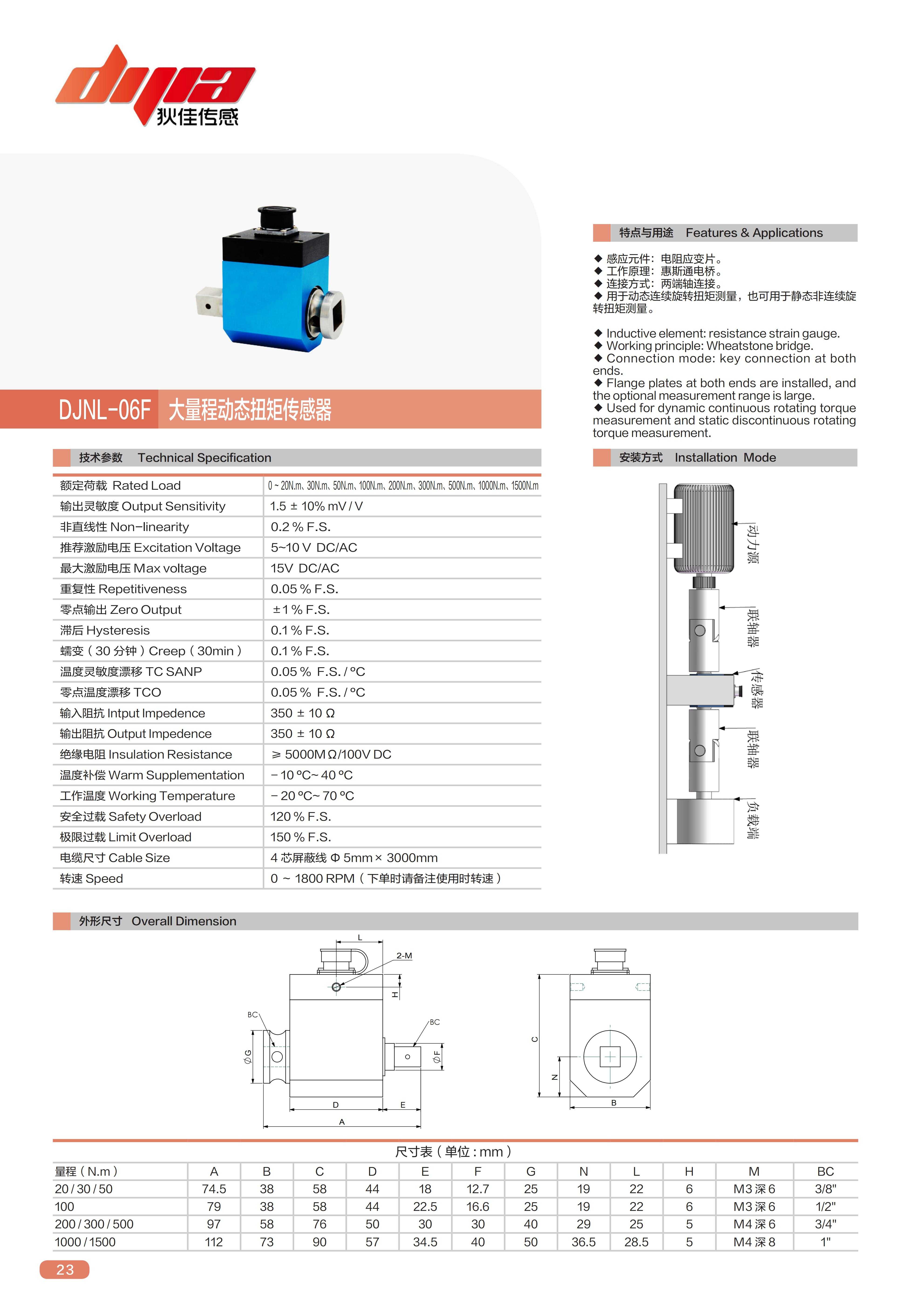DJNL-06F大量程动态扭矩传感器