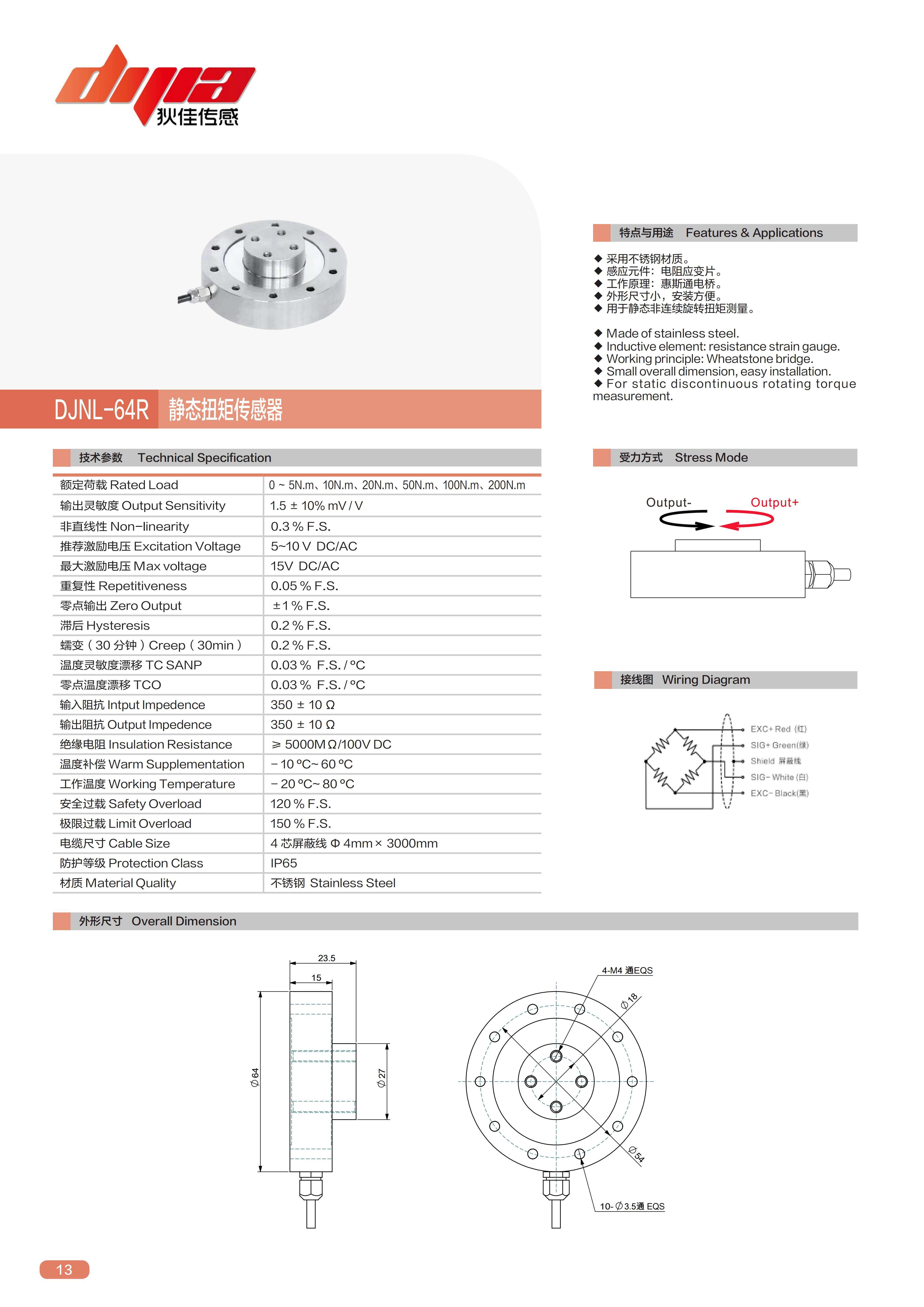 DJNL-64R静态扭矩传感器