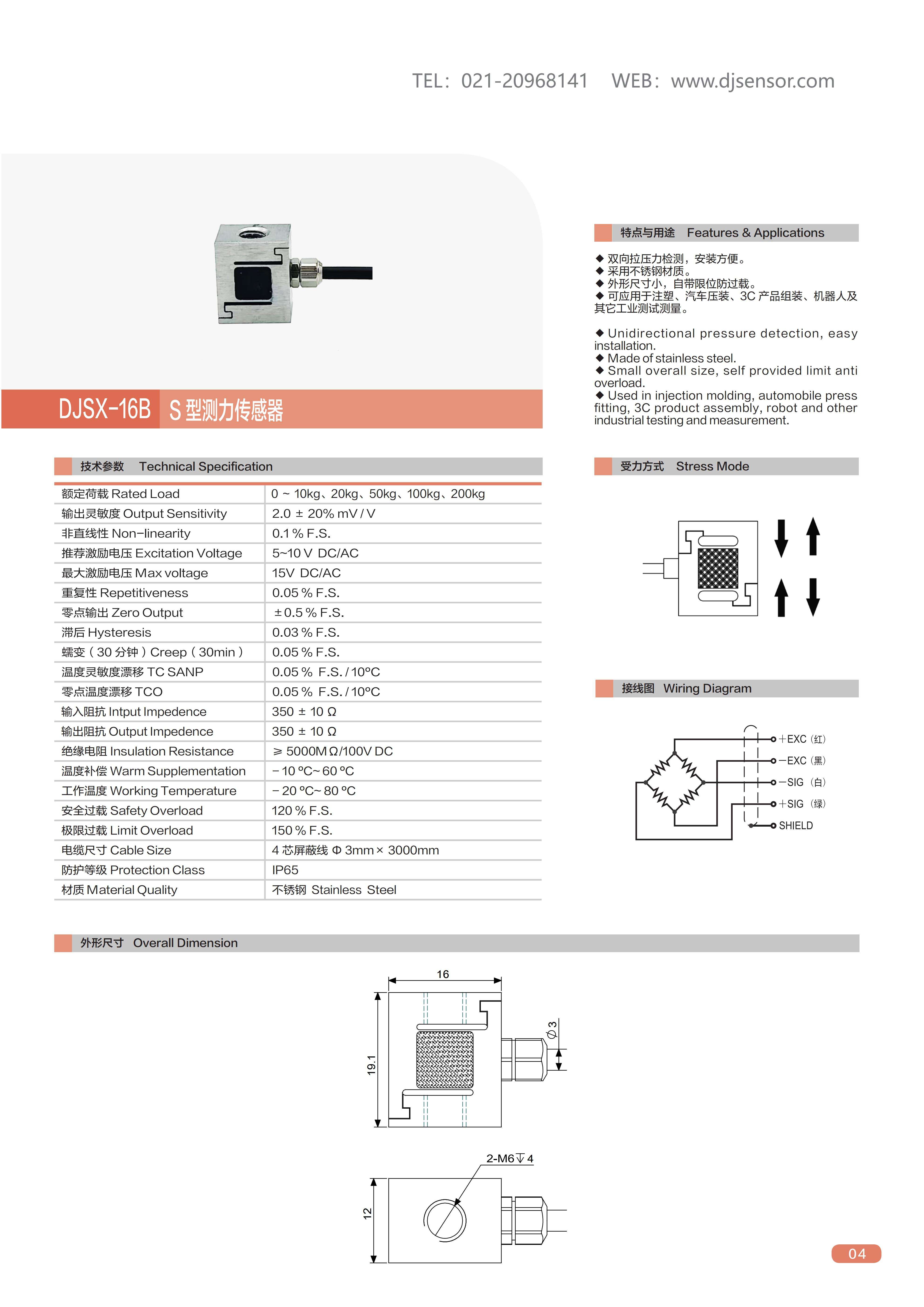 DJSX-16B S型拉压力传感器