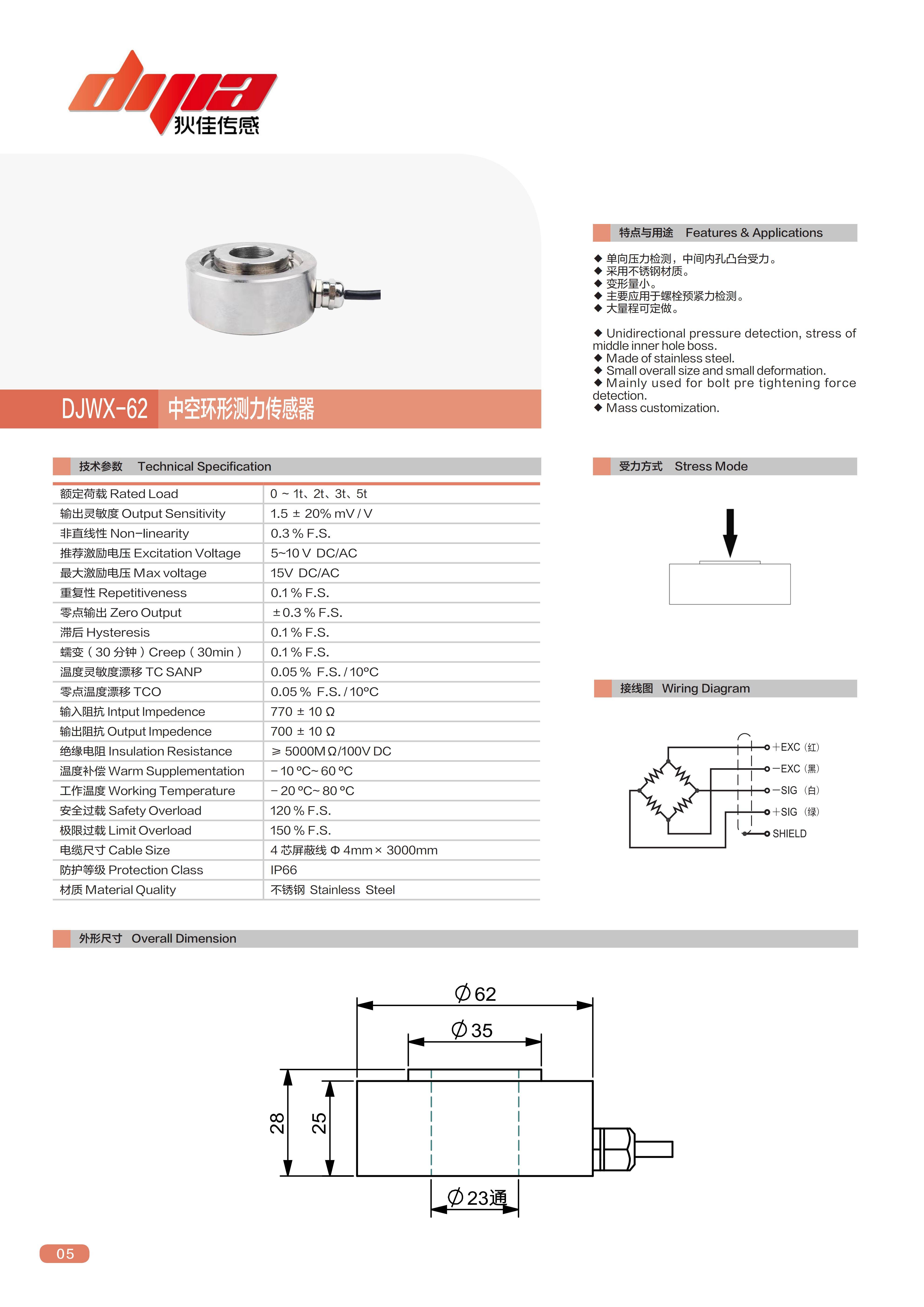 ◆单向压力检测,中间内孔凸台受力。