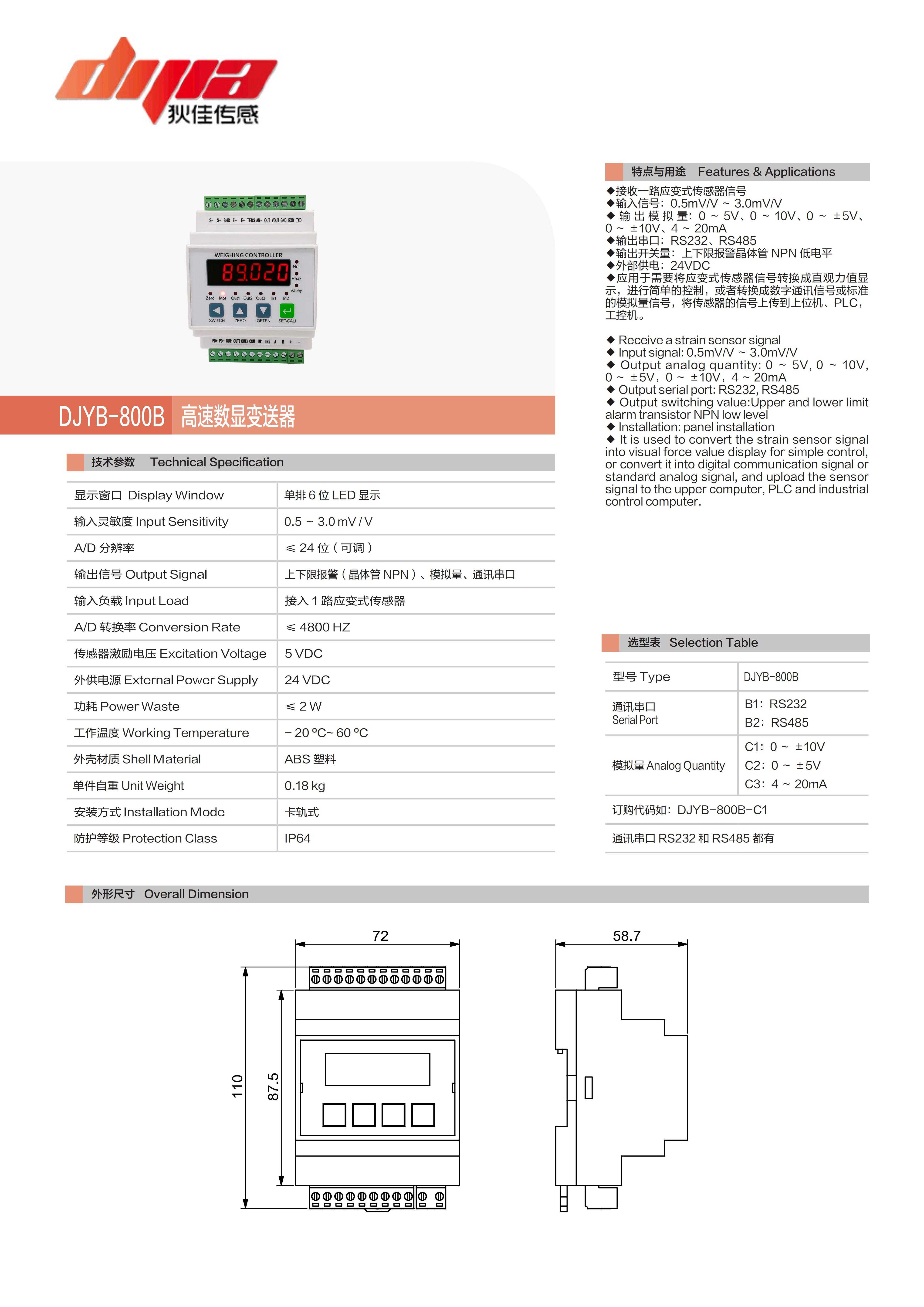 狄佳传感(上海)产品系列