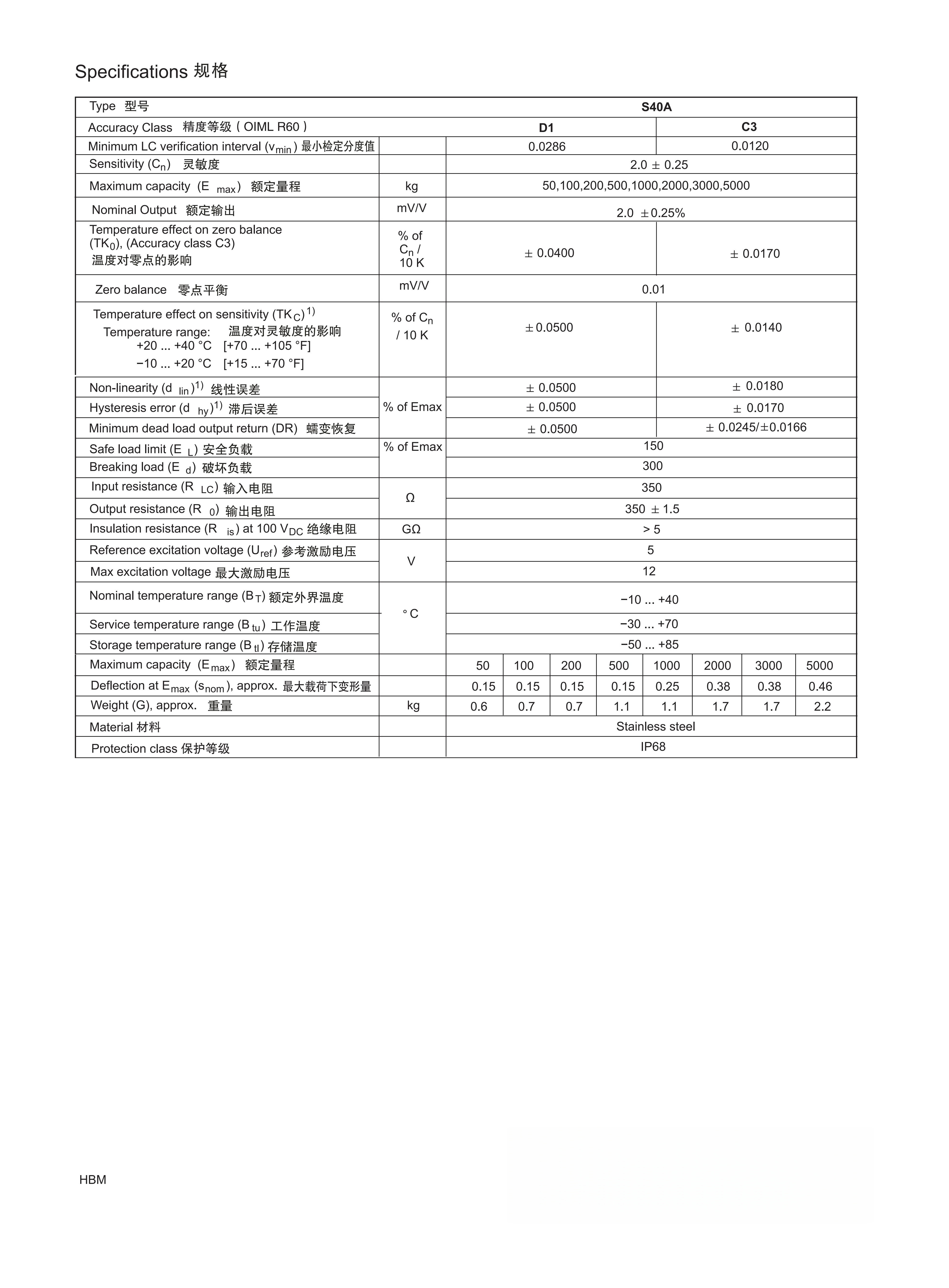 HBM S40AC3 S型拉压力传感器