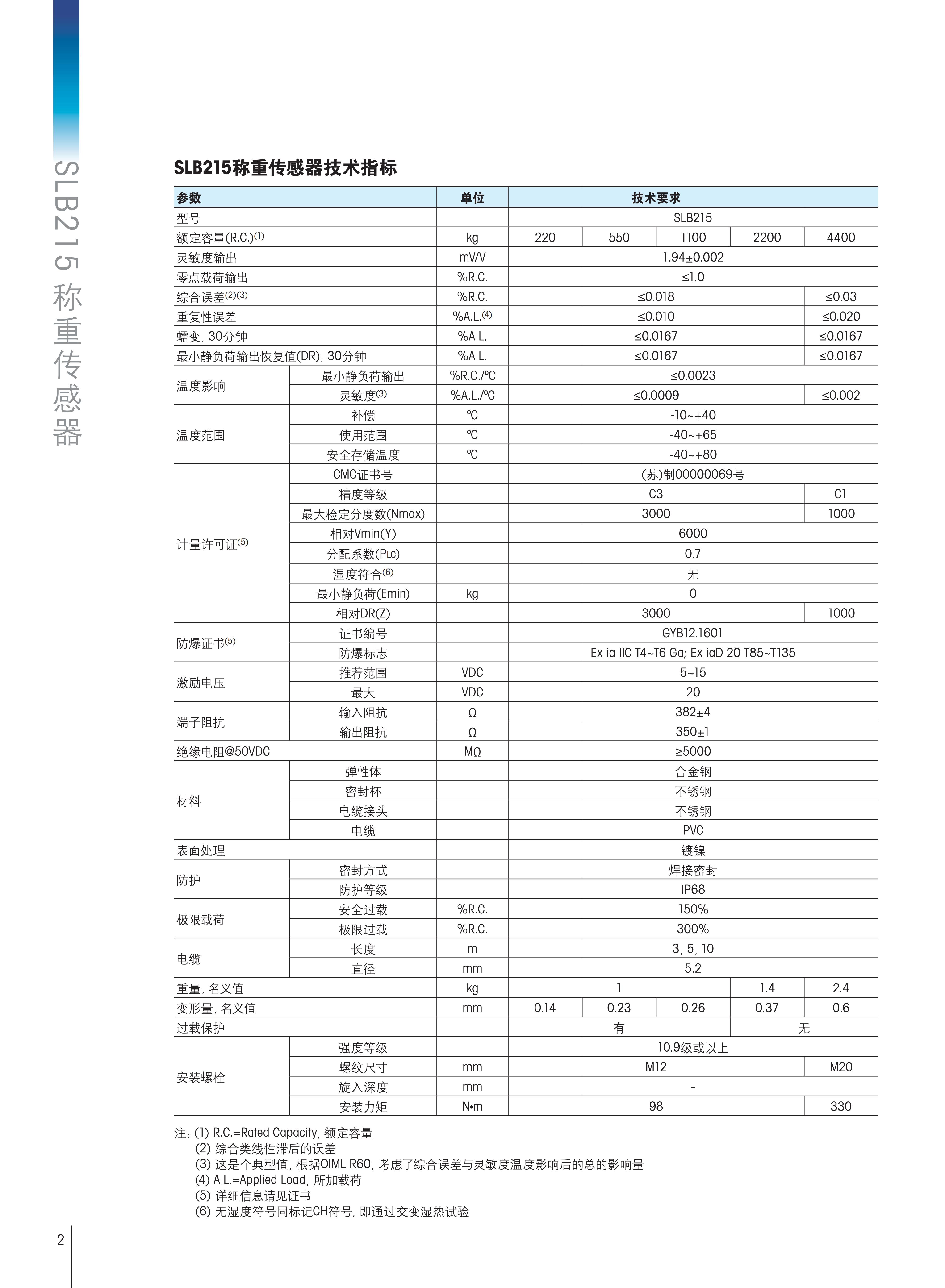 梅特勒托利多SLB215 称重传感器