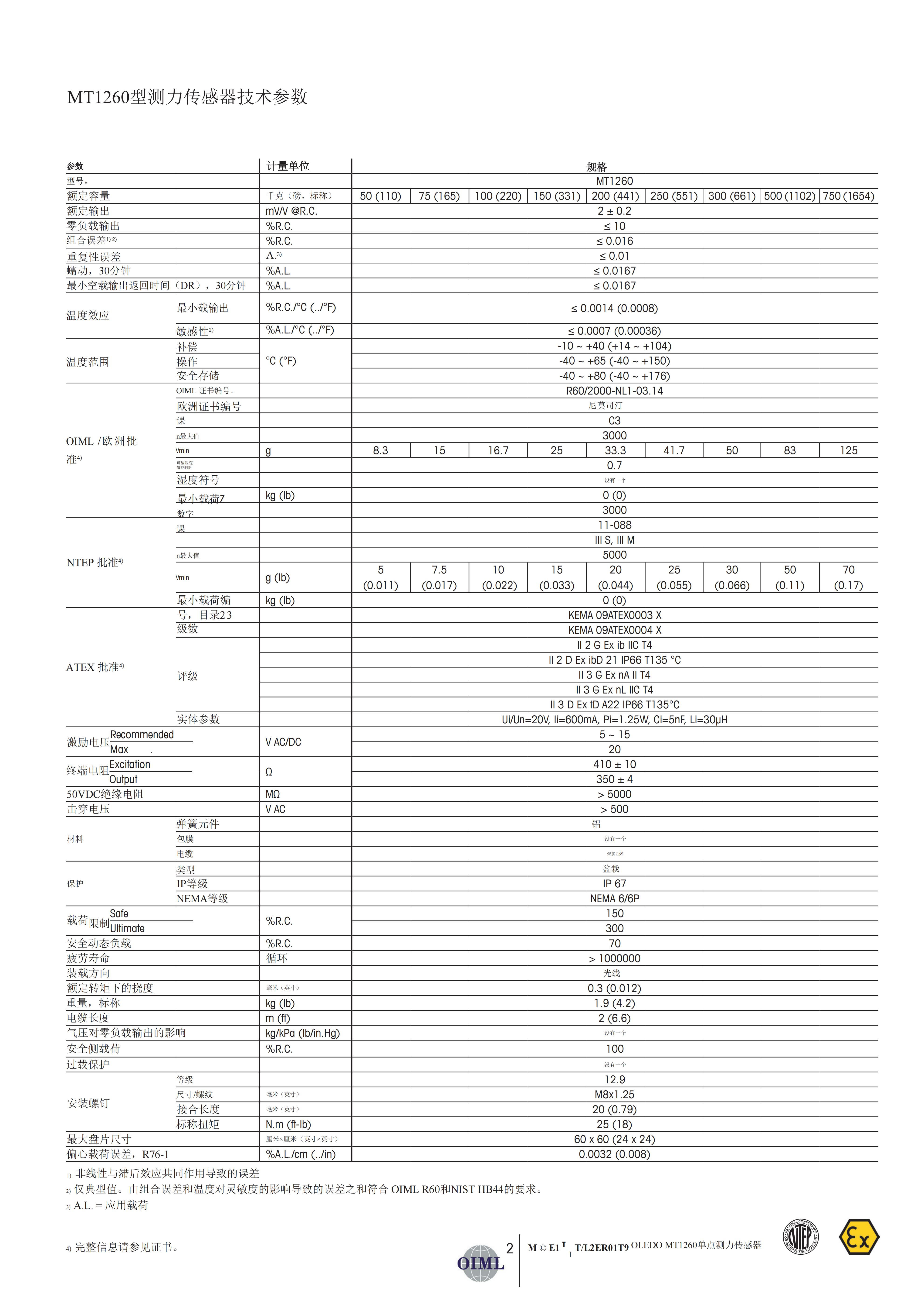 梅特勒托利多MT1260 称重传感器
