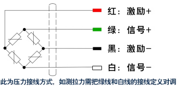 电阻应变式测力传感器基本原理是应变计贴在弹性体(敏感元件)上,当受外力作用后弹性体产生应变,从而引起应变计电阻值的变化,相应的惠斯顿电桥在外接电源的激励下产生毫伏级的电信号。原理及接线见下图