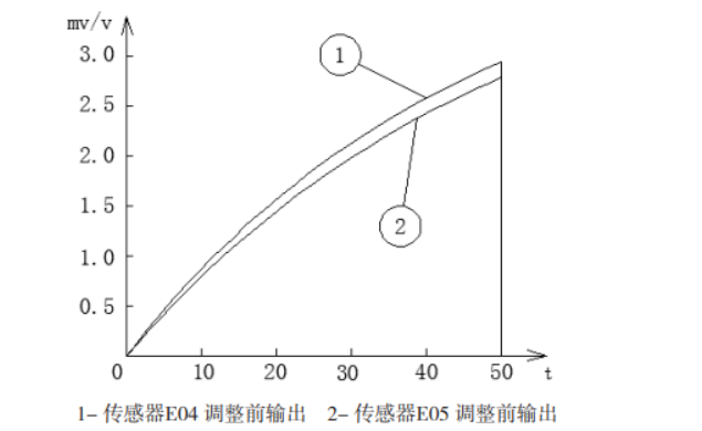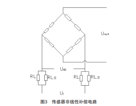 应变式力与称重传感器广泛用于工业、国防、 交通等领域,主要用作各类电子衡器及生产过程控 制设备的核心部件,其性能好坏直接影响到力值计 量或控制的准确性。非线性误差是应变式力与称重 传感器最重要的技术指标,也是高精度力与称重传 感器的重要性能指标。高精度力与称重传感器主要 用于力标准机检定、高精度电子衡器的核心部件及 其他测量线性误差要求较高场合。有一些传感器由 于其自身结构所限,非线性误差比较大,而有些传 感器是在整个生产过程中可能出现各种误差,不能 满足设计要求,造成传感器的非线性误差达不到设 计以及客户的使用要求。特别是大量程的力与称重 传感器,体积大,加工以及贴片过程都比较费时费 力,比如图1 所示的扭力环结构应变式传感器。在传 感器的重复性误差,回零等特性都好,唯独非线性 误差超差的情况下,可以通过半导体应变片和镍箔 应变片实施线性补偿法进行调整。 本文分享的应变式力与称重传感器,在 测试过程中,其中有两个传感器在回零和重复性都 能够满足要求,但其非线性误差超出了要求,具体 测试数据见表1、表2。分析两个传感器的非线性误 差曲线(见图2),是一条递减的抛物线,类似于圆 柱式传感器的非线性误差,也就是说,在负载增加的同时,输出将出现递减的趋势。 通过表1 和表2 测量数据可以得出:E05 传感器 的重复性误差0.004%FS,非线性误差-0.101%FS。 E04 传 感 器 的 重 复 性 误 差0.005%FS, 非 线 性 误 差-0.049%FS。 两 只 传 感 器 的 非 线 性 误 差 只 有 0.1%FS,不能够满足要求。 根据图2 以及表1、表2 的数据分析,传感器的 非线性误差是一递减抛物线,即随着载荷的增加输出呈递减的趋势。供桥电压Ui 恒定不变,根据电阻 分压原理,补偿电阻减小,使得电桥的实际供桥电 压UAC 增大。随着载荷的增大,补偿电阻的不断减 小,实际供桥电压UAC 不断增加,使输出呈递增的 趋势。由于传感器的输出是一递减抛物线,经过补 偿以后,输出递减和递增互补,使实际输出近似为 直线,具体示意图请参见图4。由于半导体应变片具 有灵敏系数高,补偿范围大,补偿精度高的优点, 所以采用半导体应变片的非线性补偿法。为了使电 桥电路对称,提高抗干扰能力,半导体应变片应该 一分为二串联在电桥电路的输入端。具体传感器的 贴片位置和接线方式分别见图1 和图3。 按照图3 的调整方式,传感器E04 粘贴半导体片 30 欧姆,传感器E05 粘贴半导体片60 欧姆,分别进 行精准调整后。经过加载得到表3 和表4 测试数据。 通过表3 和表4 测量数据可以得出:E05 传感 器 的 重 复 性 误0.006%FS, 非 线 性 误 差0.029%FS。E04 传感器的重复性误差0.006%FS,非线性误差 0.018%FS。两只传感器的非线性误差经过调整均达 到了0.03%FS 以内,满足使用的要求。 通过以上数据的分析,经过补偿以后的传感 器,非线性误差0.1%FS 降低到0.03%FS 左右,有了 很显著的改善。但是对于不同传感器进行非线性修 正,还需要大量实验,固定补偿电阻的参数,为后 期的量产提供方便。