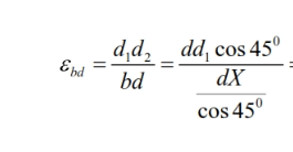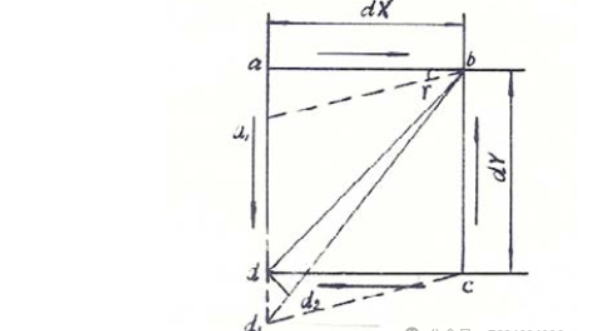 正方形单元体的边长 dX=dY,作用在单元体上的剪应力为 τ,剪应力产生的剪应变为 γ。 使单元体 abcd 变成为 a1bcd1,单元体 ab 和 cd 边变形前后的夹角为 γ,即剪应变。单元体的对线 bd 变成了 bd1,其伸长量为:d1d2=bd1 -bd 对角线 bd 的应变量为:对角线 bd 的应变量为: