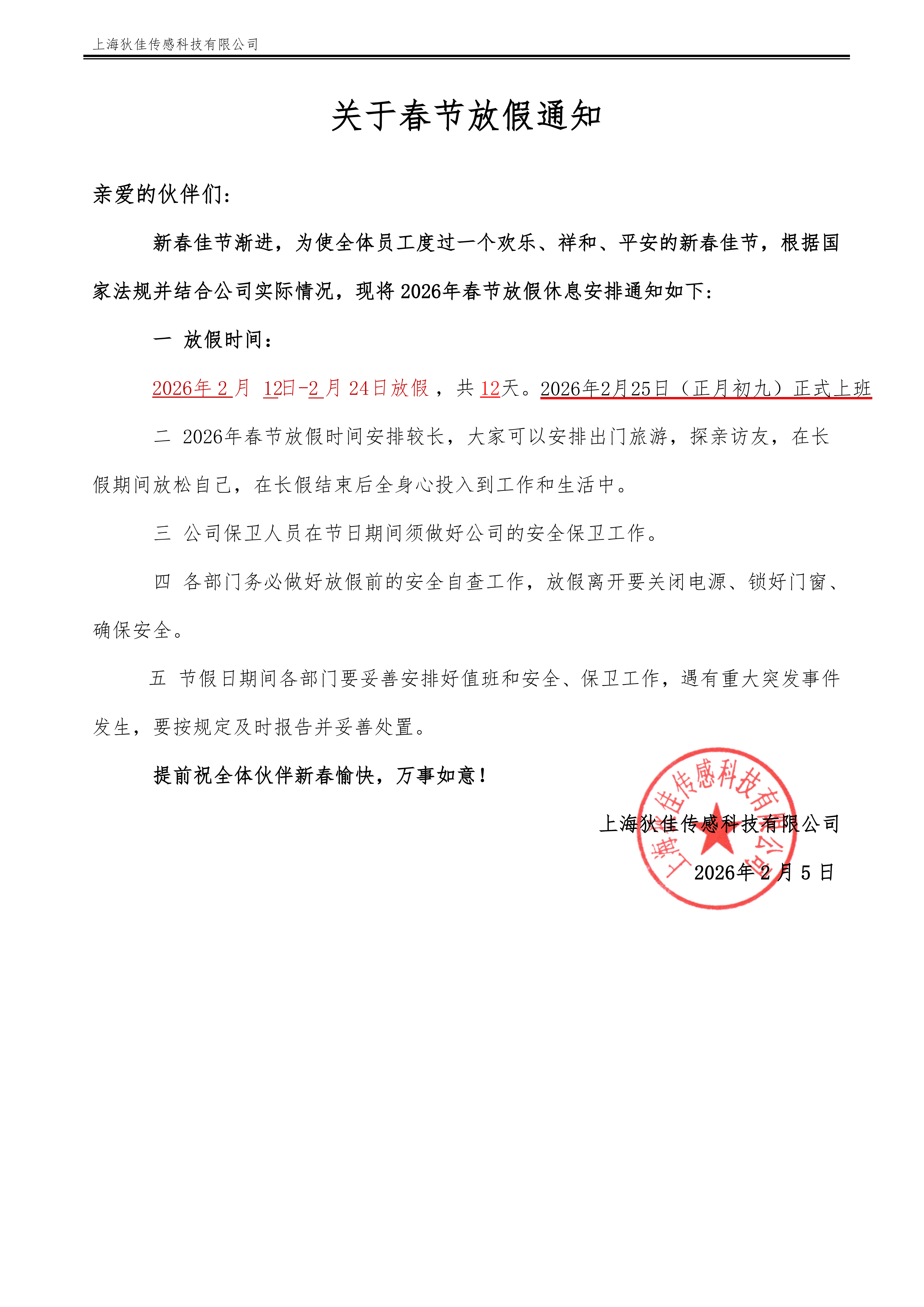 2026年春节放假通知